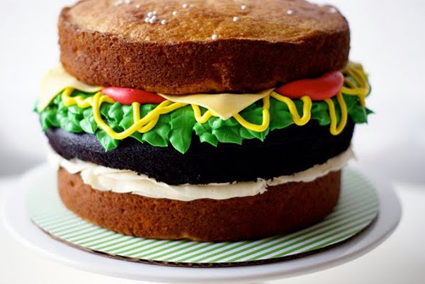 A silly but brilliant hamburger cake by Coco Cake via Poppytalk.