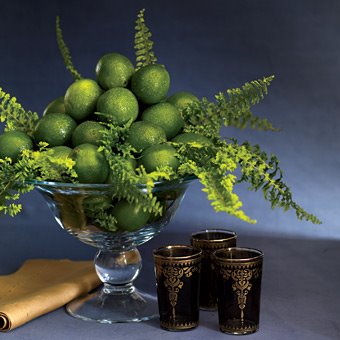 I was looking at “wedding porn” on brides.com and I saw these lime centerpieces. I added it to my idea file. I love it because it would be easy to recreate and because I love a monochromatic theme. This would be a nice little centerpiece for a dinner party too. I think the quantity of limes is what makes this.