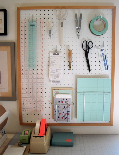 I do a lot of shipping and I’ve been trying to figure out a shipping station in my studio. I love this peg board from Wren Handmade, all the tools lined up so pretty.