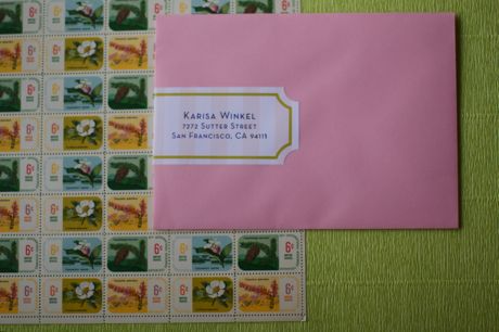 Jordan- I love the label with the pink envelope and vintage stamps. Question though, how do you get it to have green border and stripes… I didn’t see that for sale on the website? Do you add color when you print it? Maybe I’m being dense…