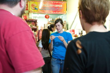 We found the clue dangling off the very end of the pier. That clue sent us to the Fortune Cookie Factory in China Town.
