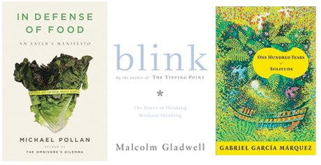 I read In Defense of Food which has me really thinking about how we eat. I read Malcolm Gladwell’s Blink which I loved and I read 100 Years of Solitude which was wonderful and made me weep.