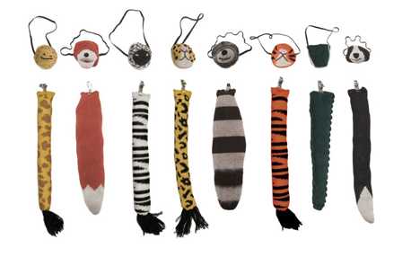 they certainly arent as cute as the oeuf line but I was just at the michaels craft store and they have the clip on tails for $3 (i think there were 4 or 5 different animals) and they have matching hats – – totally darling