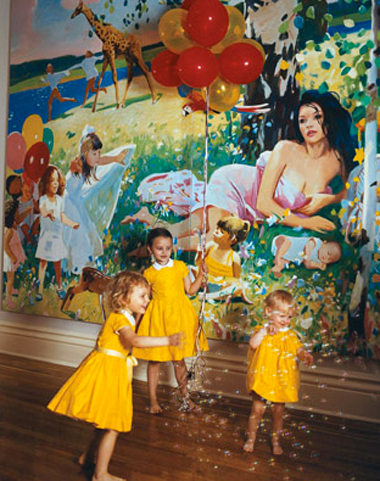 Wow. I loved the house, the family and the article. The photo of the three girls playing with blocks, etc. on the floor is so reminiscent of John Singer Sargent's painting of four sisters in white pinafores ("Daughters of Edward Darley Boit"). Somehow I think the likes of Isabella Stewart Gardner would be very, very happy coming home to a house like this! Oh, and the girls' dresses were amazing–obviously copied/inspired by 19th century frocks. My favorite part, though, was the statement that Olya is sometimes seen around town with an "exquisite toddler or two!" Not exactly sure how that is done, but definitely interesting to think about. . .