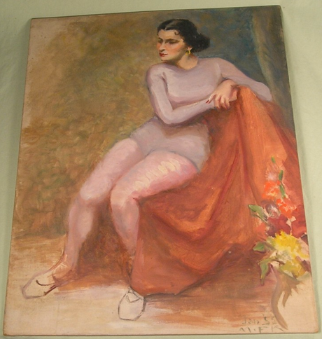 I forgot this auction was ending this morning on ebay and so I wasn’t there to outbid the winner. I really liked it, so I’m sad. (It’s quirky and I like the shoes.) Over the last year I’ve been collecting old oil paintings to make a wall like the one below (from Drew Barrymore’s offices in Domino.)