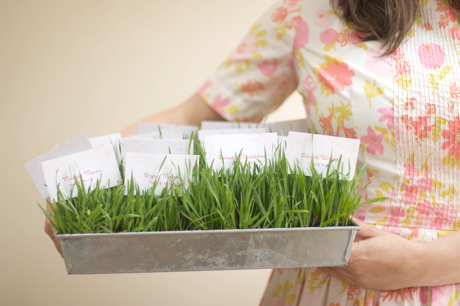 You can use wheat grass for so many things at parties and events. In this article for Project Wedding I show how to grow wheat grass and use it to hold seating cards. It is really simple and cheap! Perfect for a Spring or Summer event.