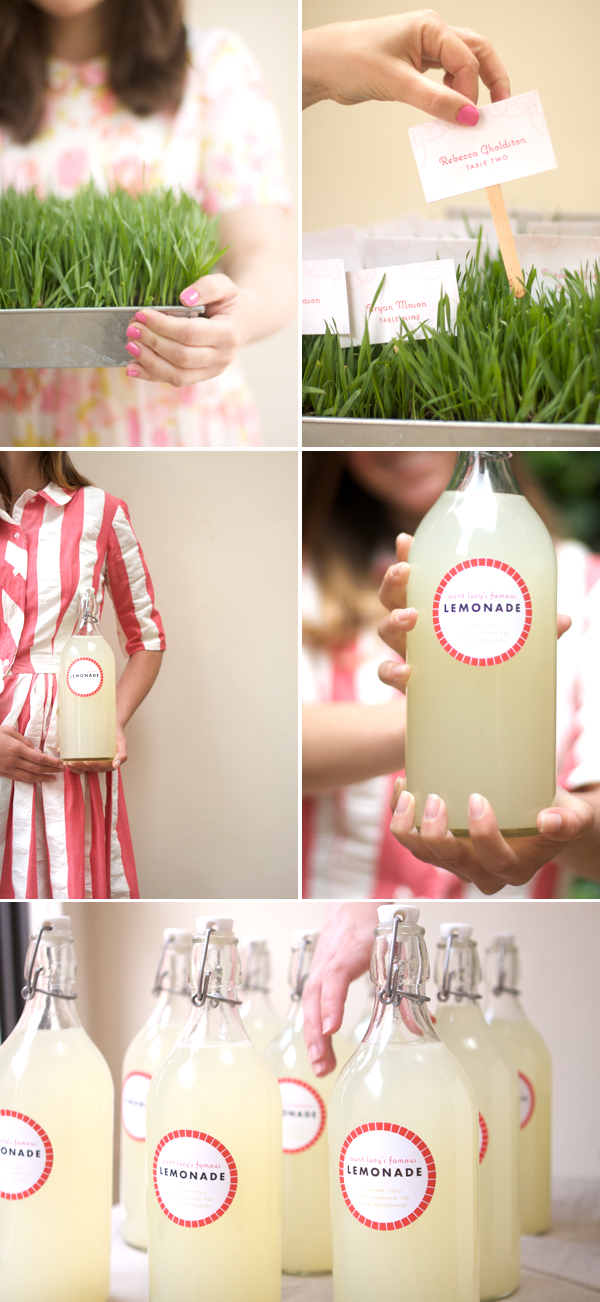 I did the wheat grass escort card and the lemonade favor DIY for Project Wedding.