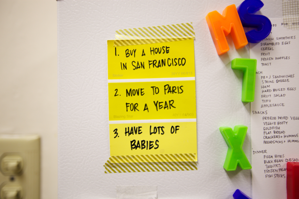 Three years ago when I was thinking about how the next 5-10 years of my life would turn out, I wrote down three things I really wanted in my heart of hearts and taped them to my fridge. (I was writing on paint chips a lot back then, they make great colorful lists!) I’ve made some decent progress on #3 (but we’re taking a loooong break in that department.) #1 Isn’t an option right now but possibly in a few years when we’ve saved more pennies. But this year I only have one resolution. It’s #2 on my big list: Move to Paris for a year. I can’t believe its really happening. (And if you haven’t heard, my awesome older sister Gabrielle at Design Mom is coming too.)