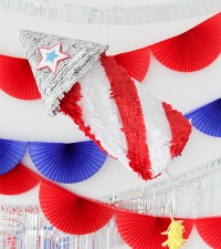 Step 1: roll out and cut several lengths of craft paper. We cut ours to 6′, 5′, 4′, and a scrap of about 2′. Rolls of paper come in various lengths, so measure the space you wish to hang these and make sure you don’t need to buy two rolls to make sure there’s enough pieces!